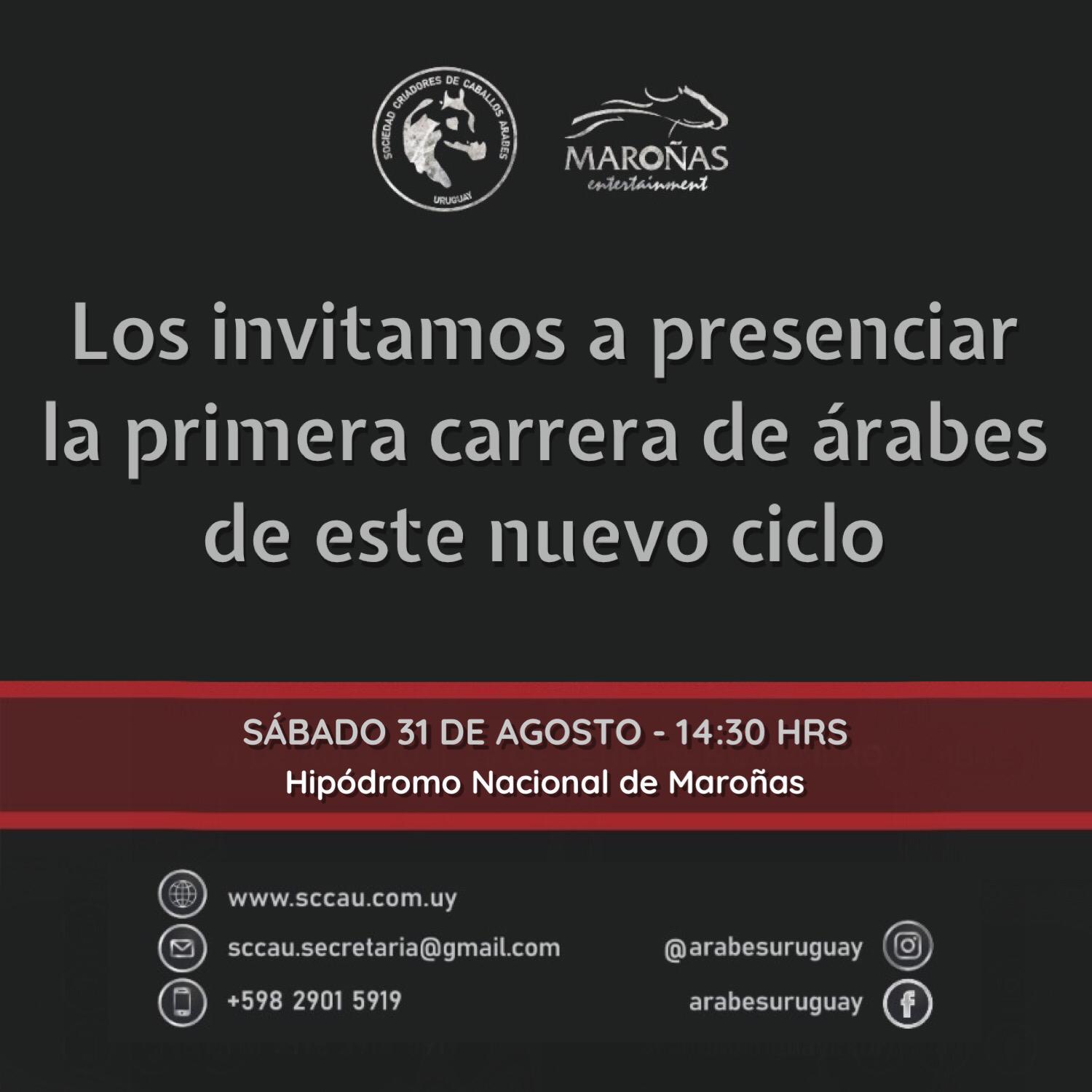 ¡Le invitamos a presenciar la primera carrera de caballos árabes de este nuevo ciclo! Sábado 31 de agosto de 2019, 14:30 horasHipódromo Nacional de Maroñas,… Leer más »Primera carrera de caballos árabes 2019